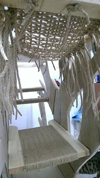例如幫這個貓樹在兩個貓咪中間做加強穩定的結構